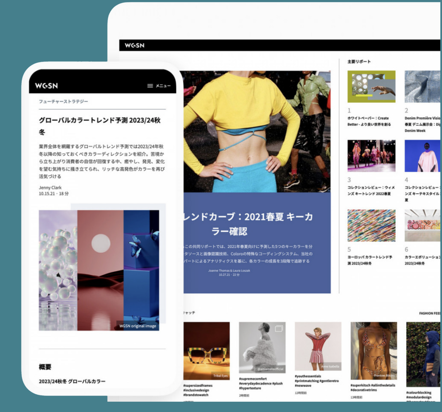 最新情報から10年先の予測まで、信頼できるトレンドインサイト、専門家がキュレーションしたデータ、実行可能な推奨事項を参考にし、自信に満ちた決断を下しましょう。私たちは、お客様が世界中のどこを拠点にしていても、次世代の消費者を理解し、クリエイティブなデザインを実現できるようサポートします。